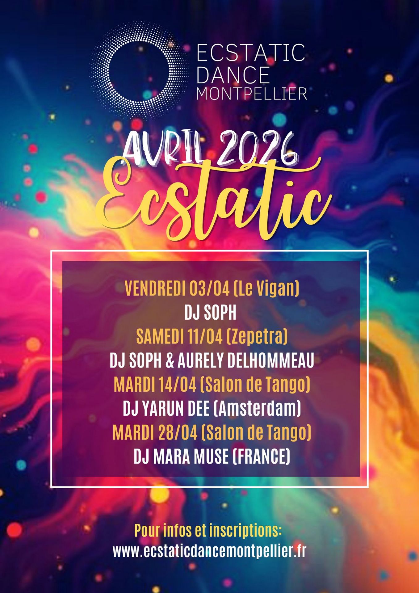 Je suis très heureuse d'offrir ces sessions régulières d'Ecstatic Dance à Montpellier